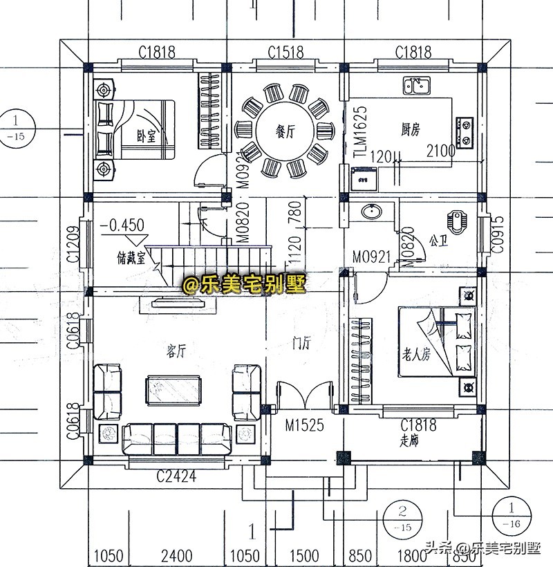 一层:门厅、客厅、餐厅、厨房、老人房、卧室、卫生间