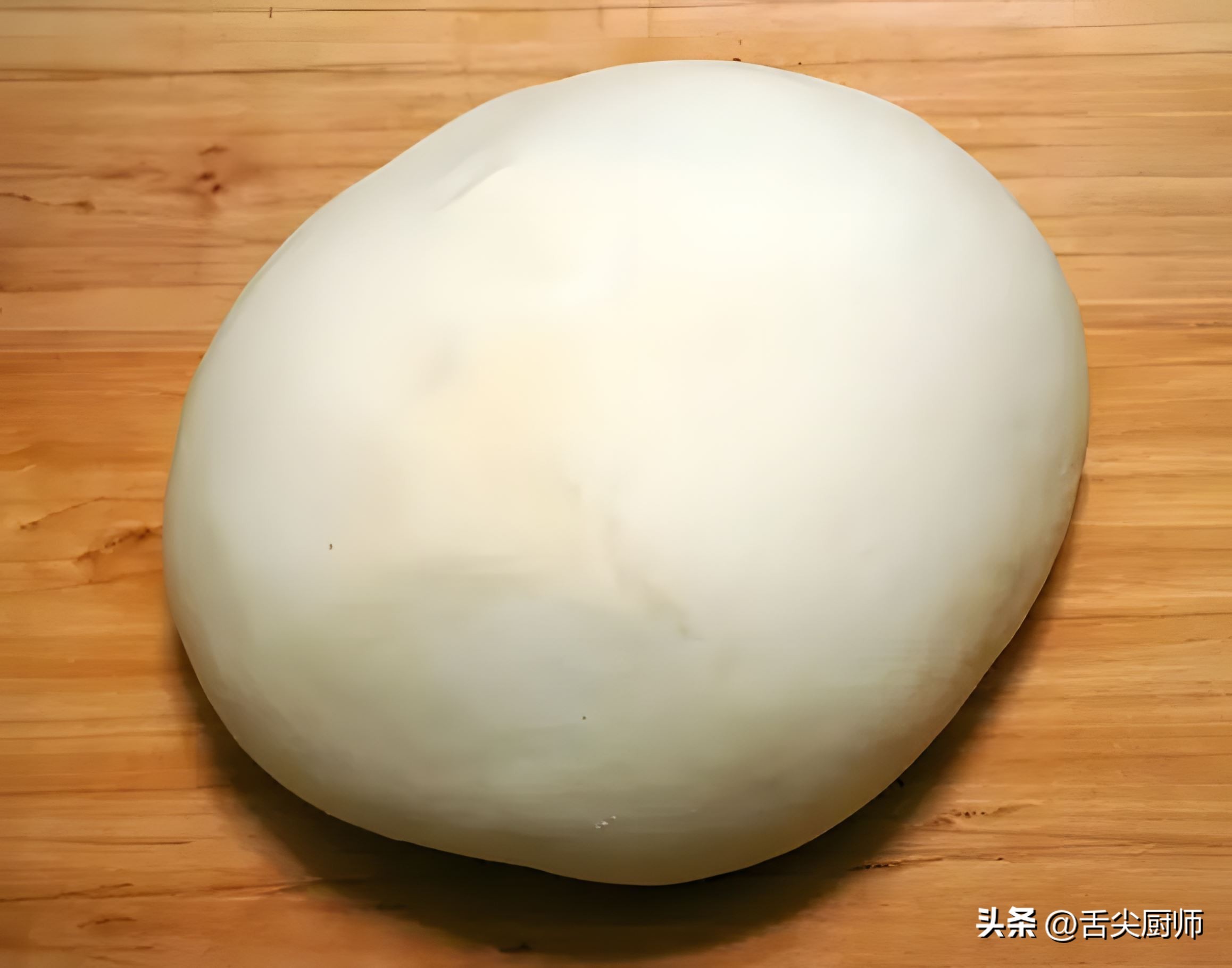 2、面粉、酵母粉与泡打粉充分搅拌均匀,倒入300克的纯净温水,边倒边搅拌。搅拌成絮状之后,倒入20克熟油,下手揉面,将面揉成光滑的面团。揉至熟油和面团融合之后(一般揉8-10分钟即可),盖上保鲜膜,放到温暖的地方醒发至两倍大。