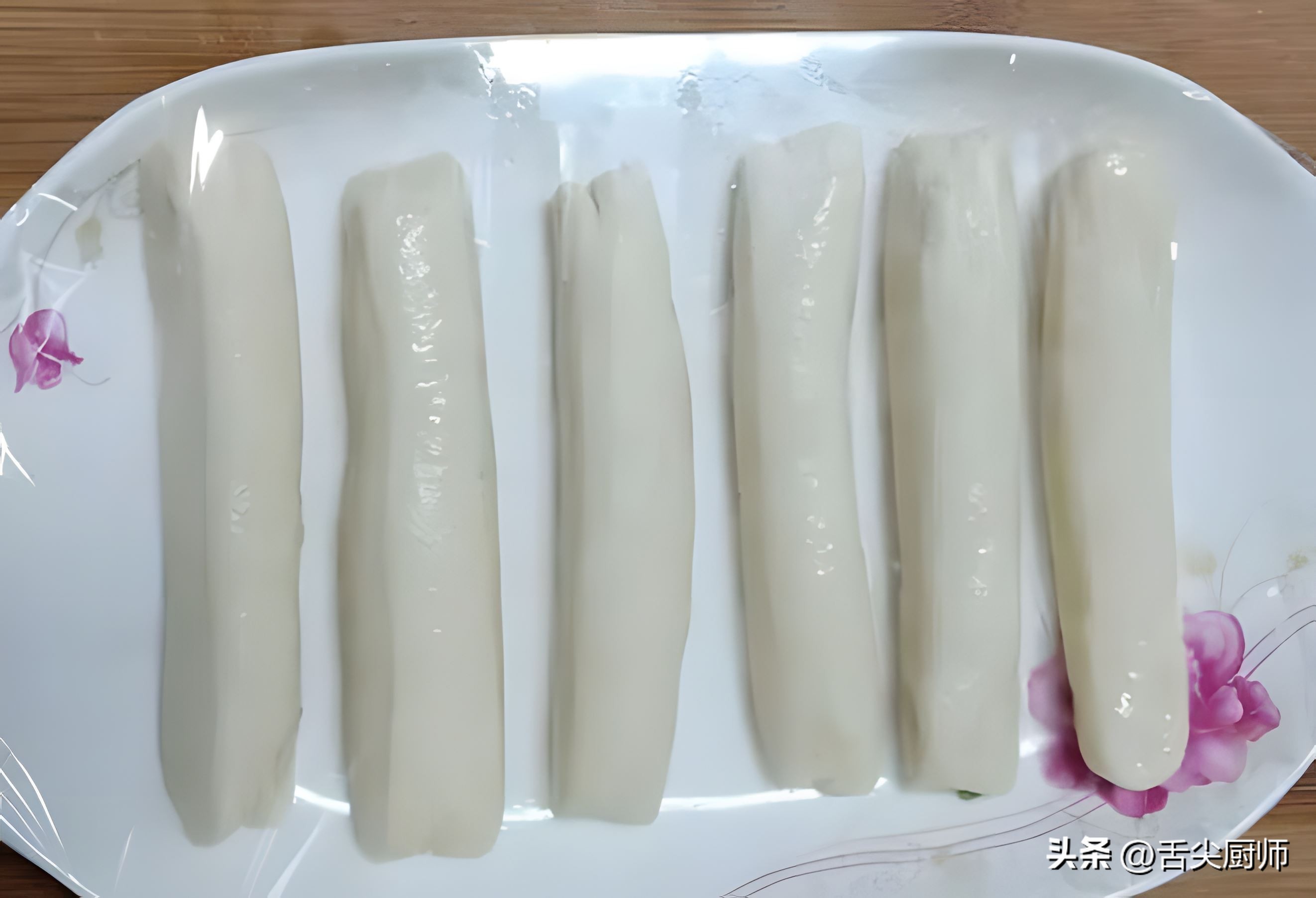 4、面团醒发好之后,取出给面团揉搓排气,尽量多揉一会儿面团,揉至面团筋道,分成大小相等的剂子,我一般一斤面粉分成八个剂子。分好的剂子揉成长条的形状。面板上喷上一层食用油油,将揉好的剂子放在喷了油的面板上(喷油是为了防止粘连),盖上保鲜膜,醒八到十分钟左右。