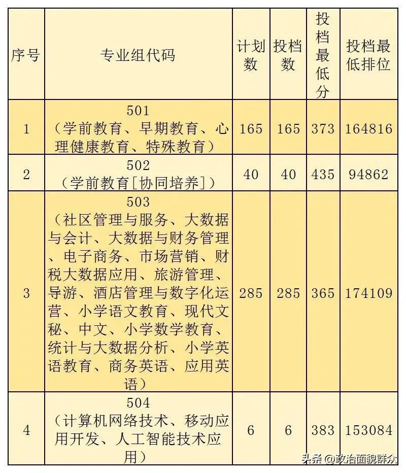 学前教育专业衔接的本科专业是韩山师范学院的学前教育专业。在历史类的投档线为435分,仅超出本科线2分。物理类的招生计划比较少,投档线也比较高,为469分,超出了本科线30分。