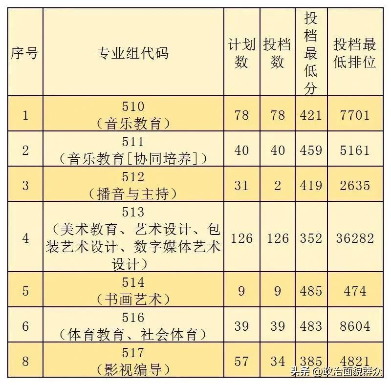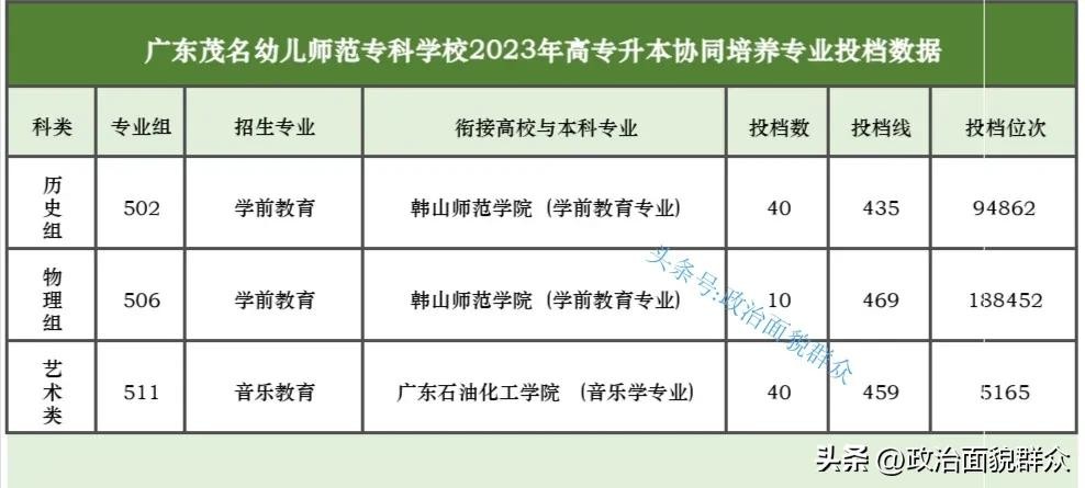 另外,艺术类中也有协同培养招生,招生专业是音乐教育,衔接的是广东石油化工学院的音乐学专业。投档分数比较高,达到459分。