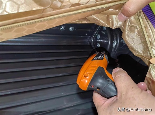 图3 用电动螺丝刀松开固定轮子的螺丝