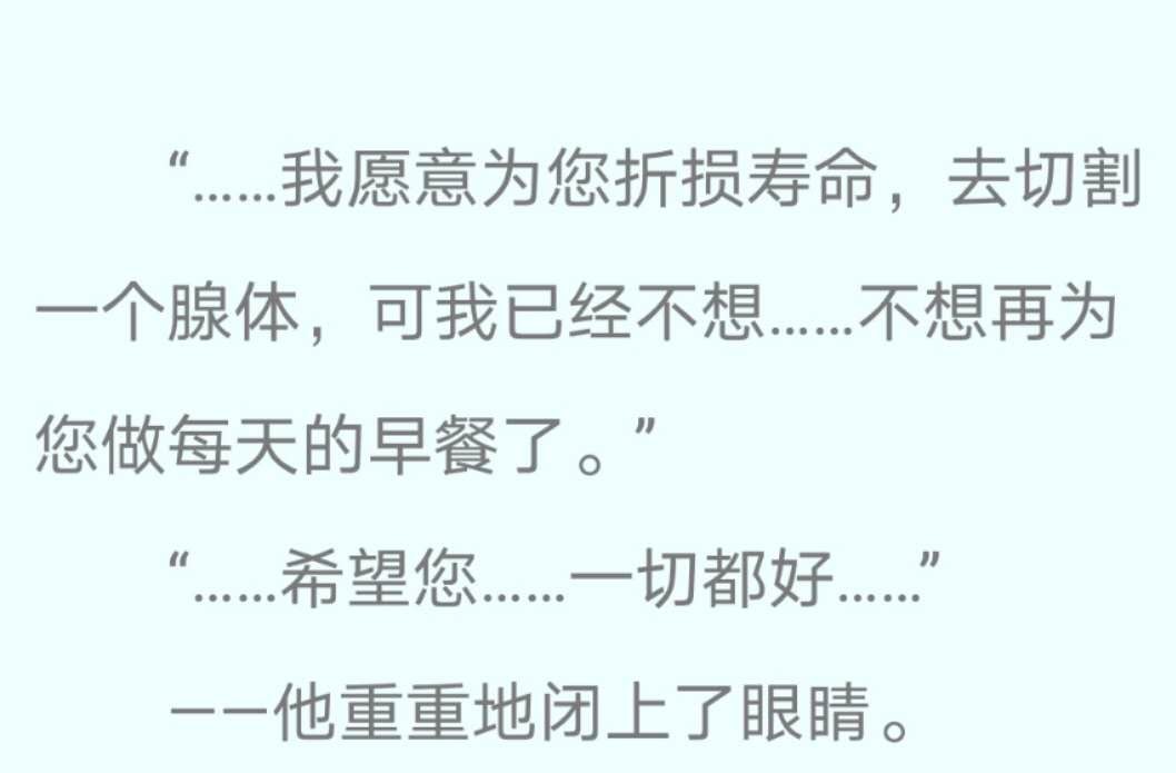 由于当权者几乎都是ALPHA,主流声音都倾向于1。O于是提出自己当实验者,切除腺体,给A做解药,条件是A要同意离婚。