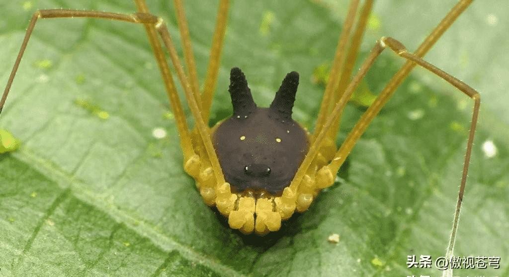 长着狗头模样的蜘蛛,该蜘蛛最早于1959年一位生物学家在厄瓜多尔的热带雨林里发现,学名叫“Metagryne Bicolumnata”,别名叫黑兔子盲蛛。