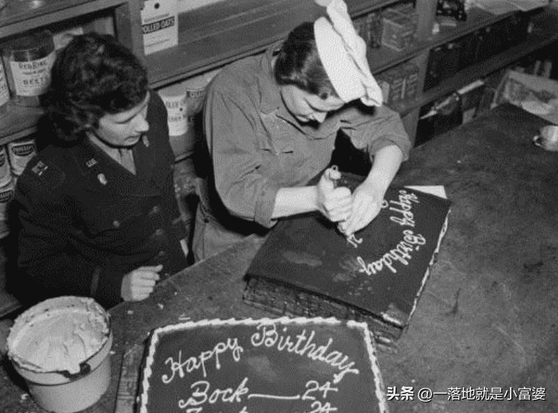 上世纪50年代,美军的炊事兵,正在厨房里制作生日蛋糕,为过生日的士兵们庆生。因为部队中有不少人,都是同一天生日,所以生日蛋糕并不是一个人的,而是一群人的。蛋糕的表面,都会用奶油写上每一个在当天过生日的士兵的名字,