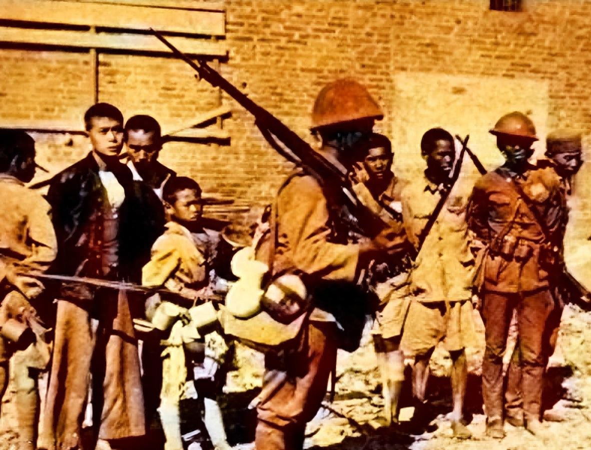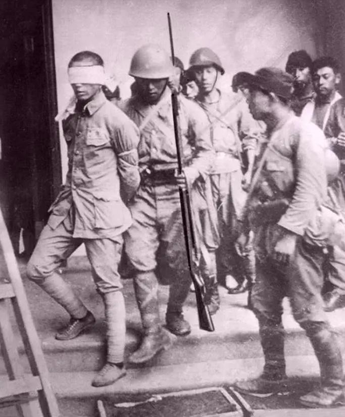 1937年南京保卫战中,日本敌人押送一名国军战士去处决场。这帮鬼子永不可宽恕。
