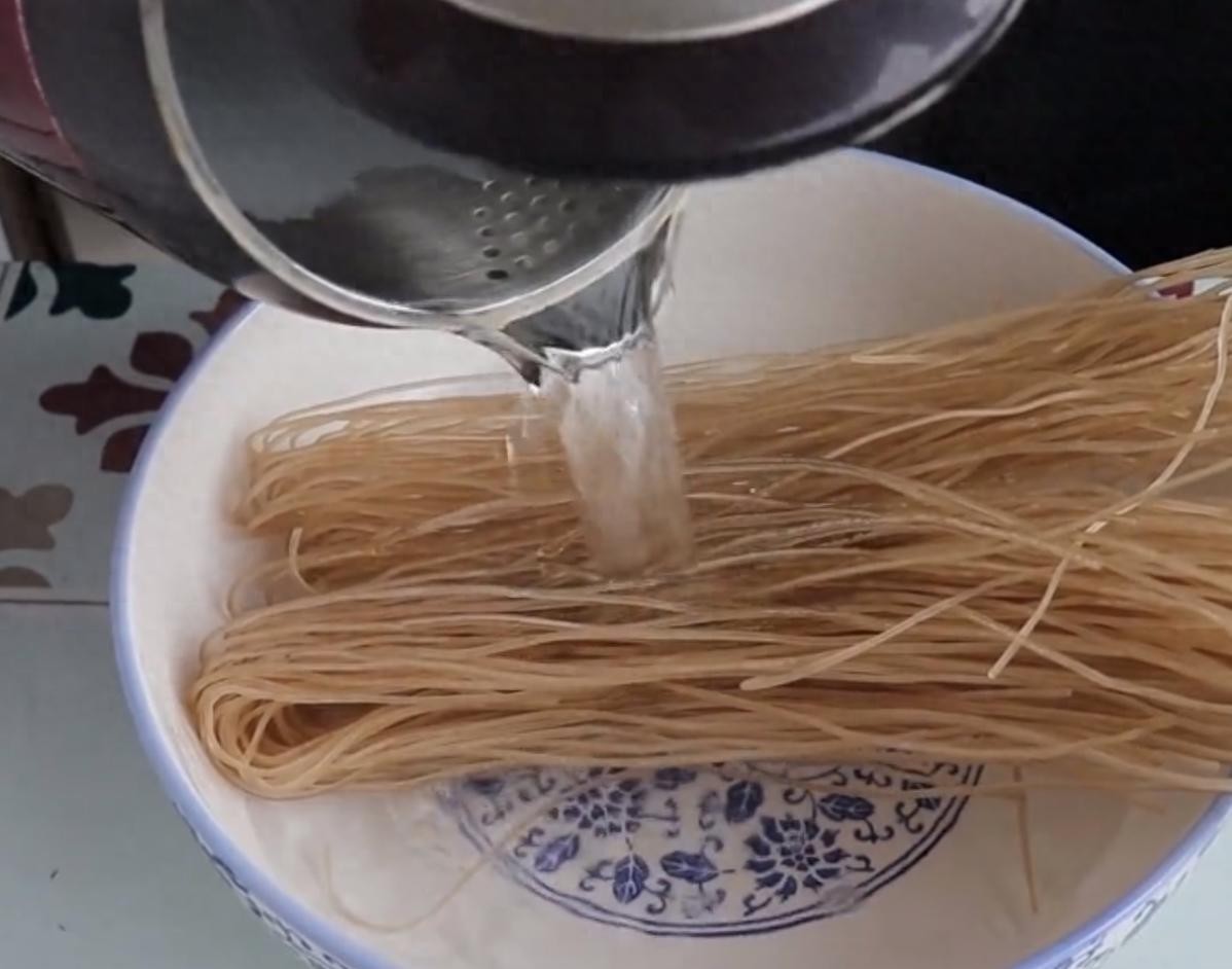 7,粉条煮好之后沥干水分直接放入碗中搅拌一下