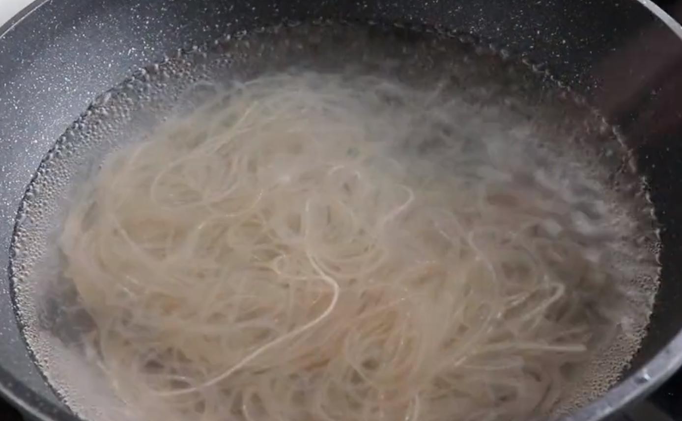 5,起锅烧水,水开后下入红薯粉,大概煮上5分钟左右,这个要看自己家红薯粉的筋性如何