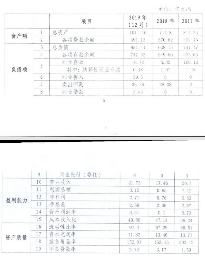 进入2019年,平顶山银行资产质量、盈利等指标快速下降的趋势初步得到缓解。其中平顶山银行2019年的营业收入为21.73亿元,同比增长24.46%;净利润为2.71亿元,同比增长256.58%。资产质量方面也有了些许好转,截至2019年末,不良贷款率为2.72%,同比下降0.45个百分点。截至2019年末,平顶山银行资产总额为1011.16亿元,资产利润率为0.31%。2017年、2018年这一数字分别为0.73%、0.1%。