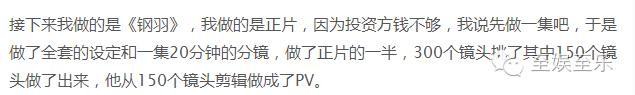 纳尼?既然投资都还没开始,那先前的两部PV是用大风刮来的钱做的吗?投资商没钱的事实,在后来,得到了钢羽PV导演孙猛的证实。