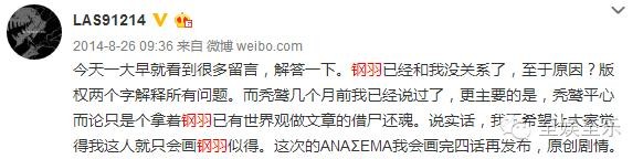 然而,当有粉丝到贴吧询问钢羽版权归属时,作者LAS老师却回答到……