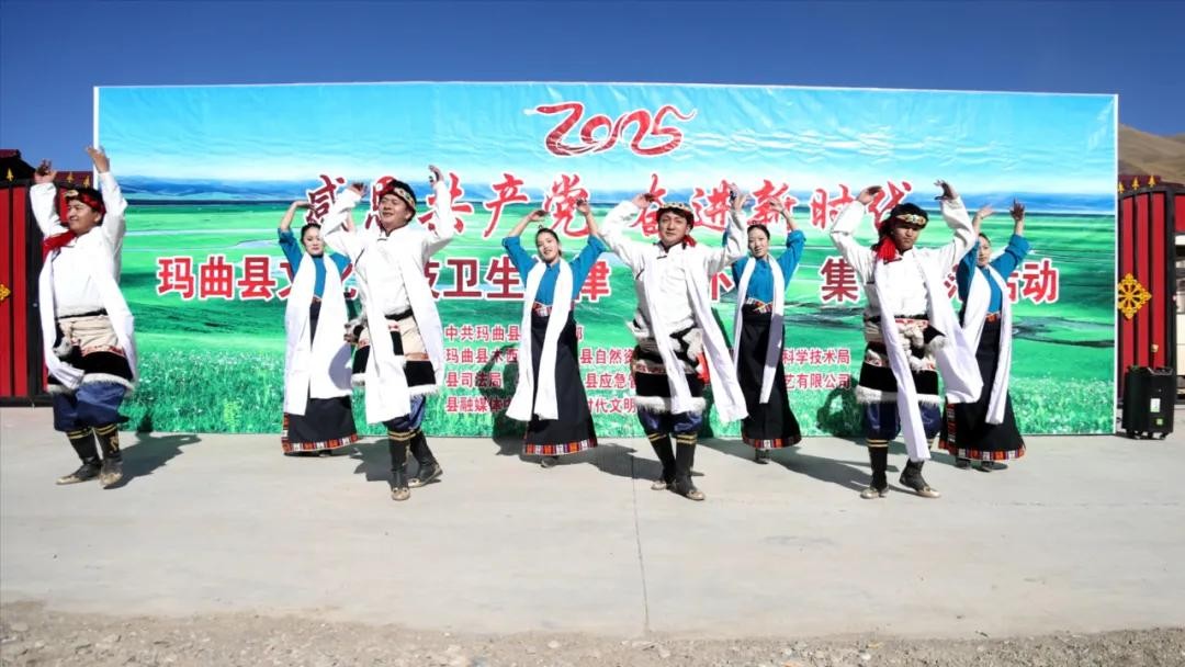 喜上加喜。让大家意想不到的是,在搬进定居点的第一年春节,由县委宣传部牵头,组织卫健、司法、农业农村和科技、应急管理、新时代文明实践中心办公室等多个部门共同开展的玛曲县2025年文化科技卫生法律“四下乡”集中示范活动也来到了家门口,为大家送来了精彩歌舞、各类惠民服务。