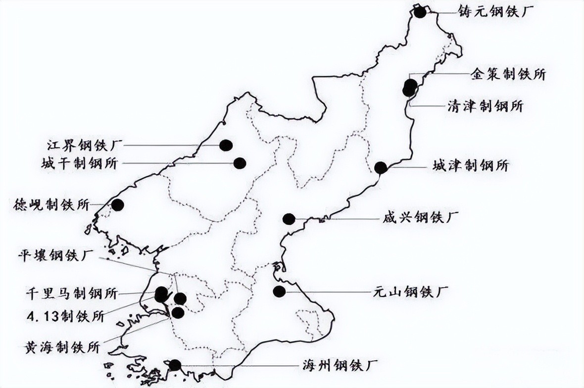 但和本国矿产资源不相符合的是,这里的铁矿生产技术和产量都不高。从朝鲜钢铁企业来看,清津和金策是朝鲜两大钢铁生产基地,其中朝鲜东海岸的清津地区,三大钢厂清津、金策和城津都落位于此。