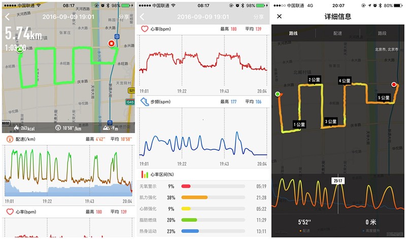 配速、实时运动心率、步频、运动轨迹、海拔等信息客户端APP一目了然(对比Nike Running)