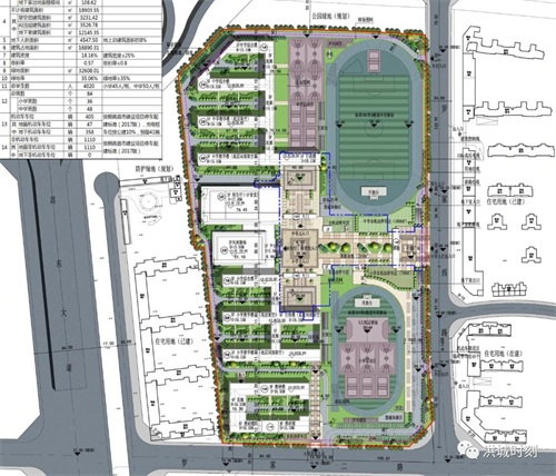 从学校建设信息看,项目总建筑面积71586.65平方米,其中地上总建筑面积56843.7平方米,地下总建筑面积14742.95平方米,计容建筑面积52683.1平方米,其中中学部教学及辅助用房18038.68平方米,小学部教学及辅助用房13718.54平方米,教研区及辅助用房9198.73平方米,报告厅5145.49平方米,食堂2597.6平方米,入口大门146.16平方米,不计容建筑面积18903.55平方米。