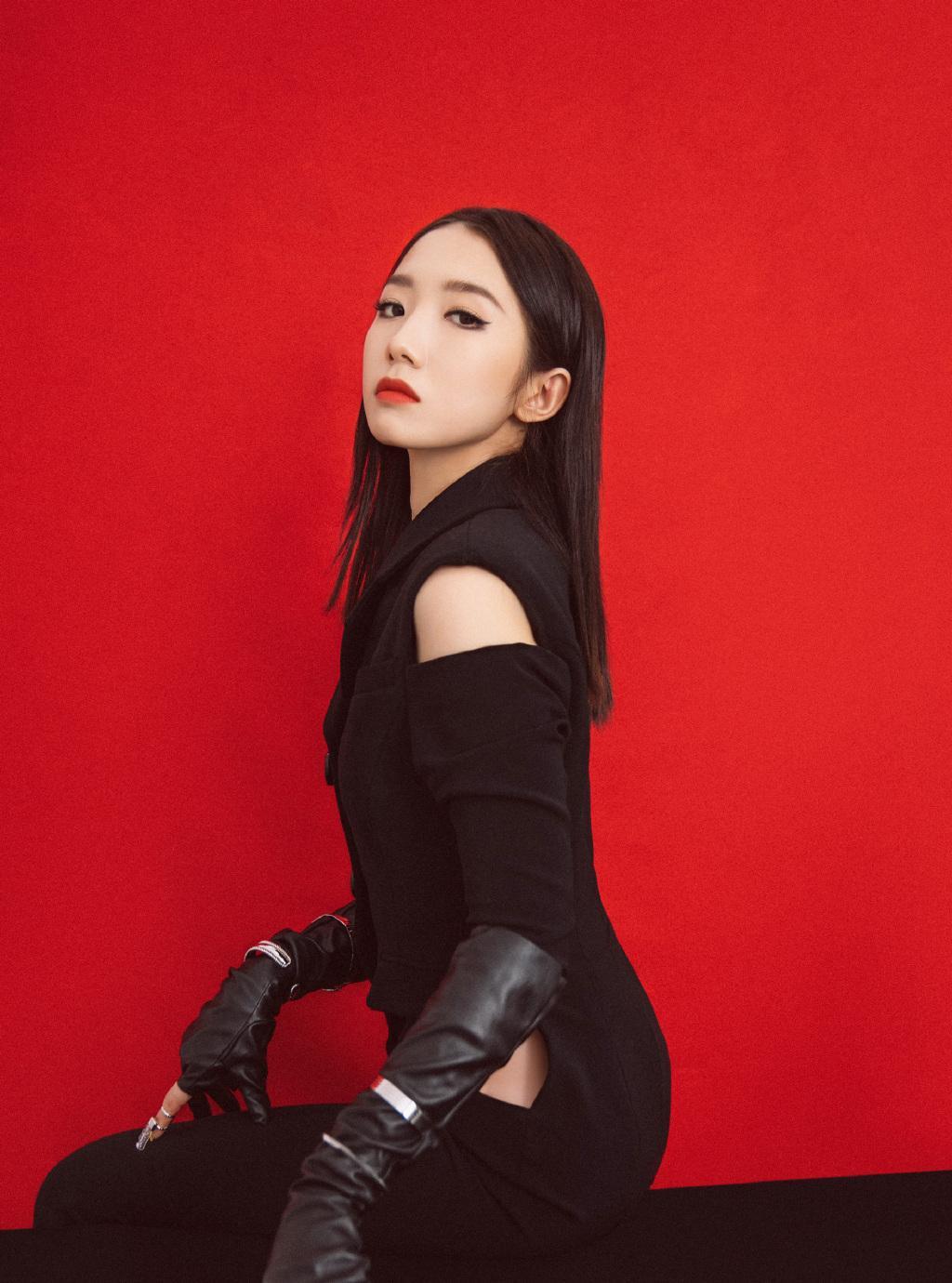 要说黑色那绝对是每个人都很适合的百搭色,但是怎么从每个人都适合的百搭色中穿出一种个性感也算是一种学问。但是孟美岐的这个造型最大的一个特点就在于一大片的黑色用一个红唇加以点缀,妆容只管精致,配上一个高挑的眼线就足够吸引观众的眼球。