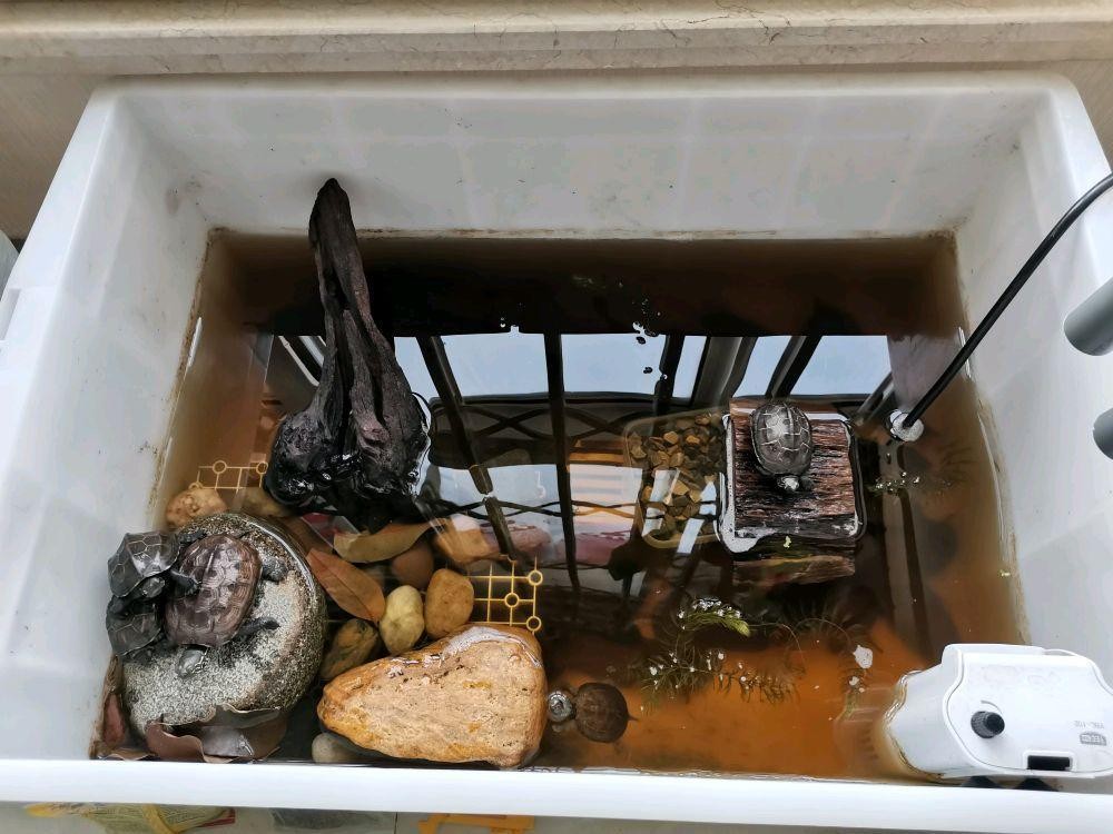 有些拥挤,水深只有10cm,龟缸尺寸38x57。