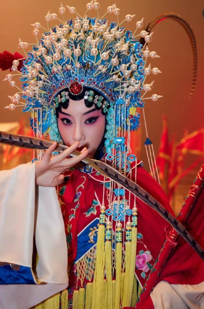 在古代,观众通常距离戏台较远,观众无法通过投影屏幕近距离观察细微的演员面部表情变化。因此,夸张的、浓墨重彩的戏曲妆容可以形成较强的视觉冲击力,让观众感受到舞台上的表演氛围,起到先声夺人的效果。