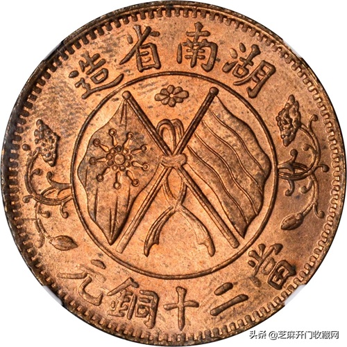 湖南省造双旗背嘉禾当二十铜元/NGCMS65BN ,估价: RMB 2000-4000,成交价格:RMB 2530