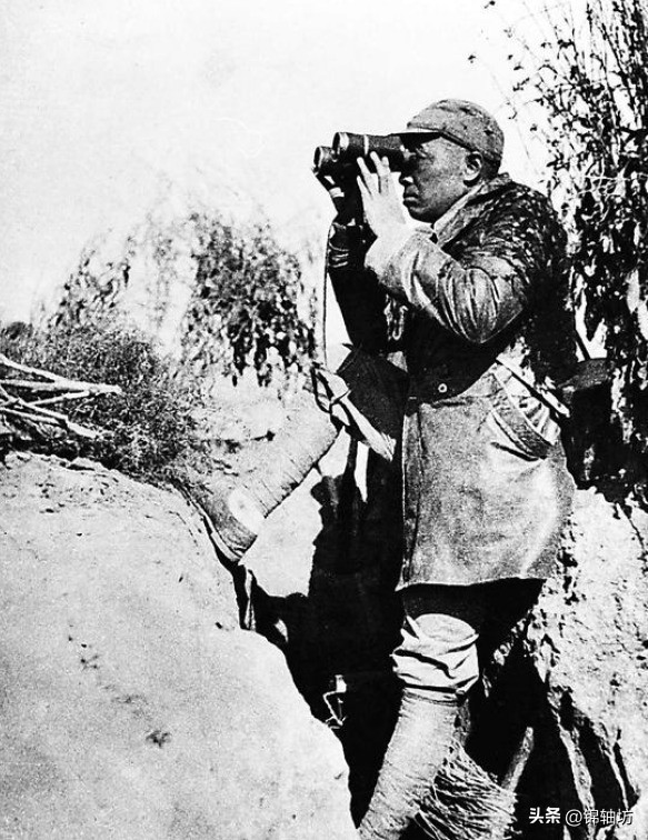 彭德怀在关家垴前线距敌约500米处,观察敌情