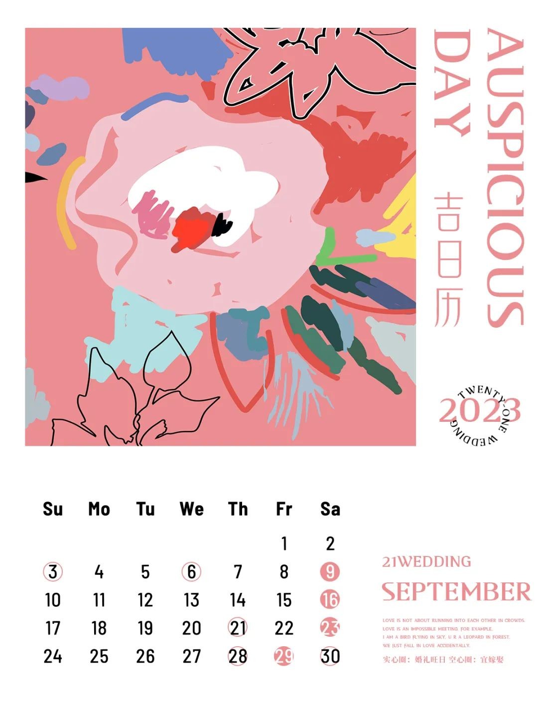 注:2023年的吉日历,我们以中华万年历和黄道吉日为蓝本,以婚礼旺日(first choice)、宜嫁娶(second choice)、空白三种形式进行标注。