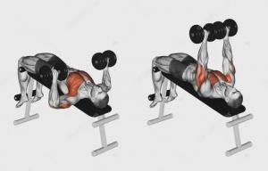 2、仰卧上斜哑铃推胸,主要练习胸大肌上缘。