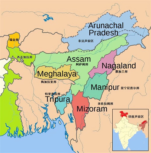 我们知道,人种的不同跟地域是有很大关系的。在地图上,印度东北区的七个邦,在区位上是夹在中国、缅甸、孟加拉国之间的。
