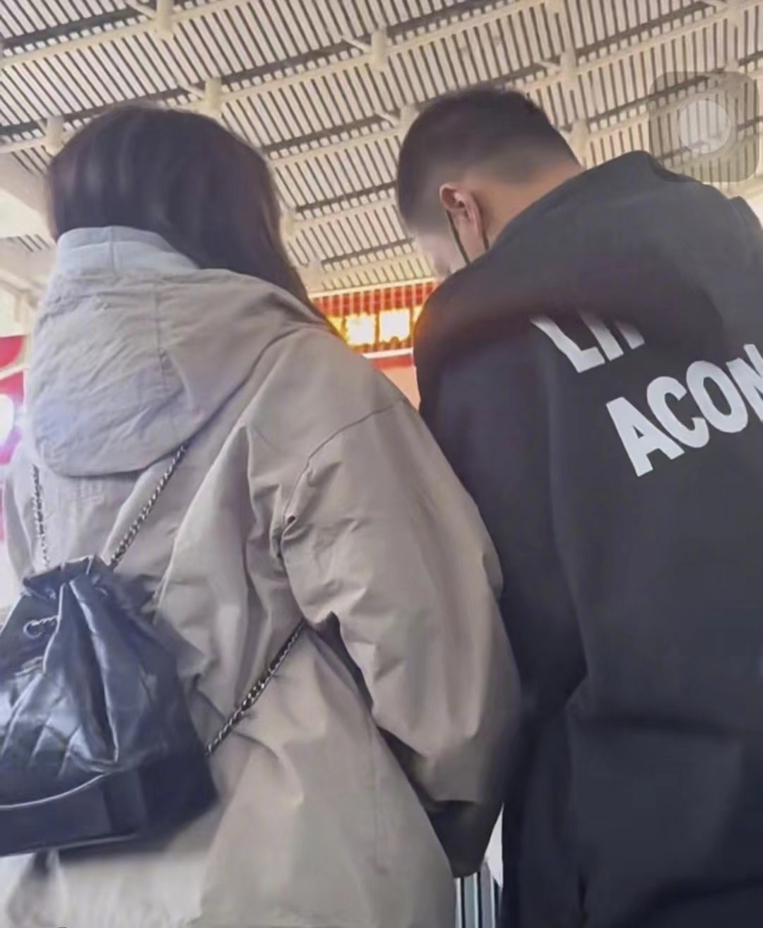 有网友拍到张佳宁和一位男子一同赶车,张佳宁挽着男生的手,身体紧贴着对方,就是情侣才会做出的动作。