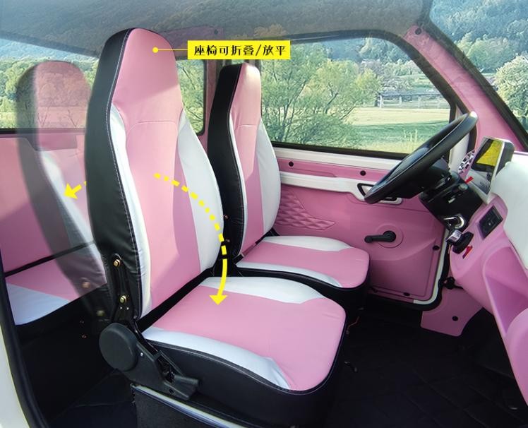 其他配置:车内配置4人一体发泡式汽车座椅,采用可折叠、可放平设计,可以随时腾出空间,也能做到短暂休息,舒适感很强,车内采用方向盘式操作,标配MP3、倒车影像等,另外,车辆采用220V充电接口,不用专用充电桩,也能进行充电,十分方便。