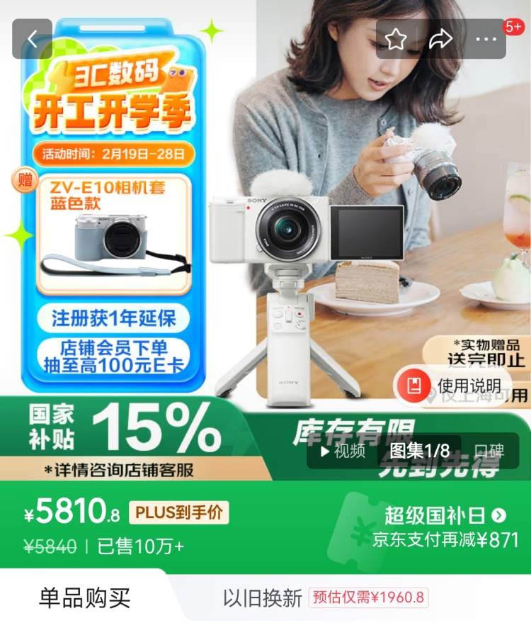 记者看到,索尼ZV-E10半画幅微单相机、ZV-1数码相机 ,佳能EOS RP 、EOS R8等热门品牌、热门型号相机均参加国补,原本价格在万元左右的相机,补贴后能优惠1500元-2000元。