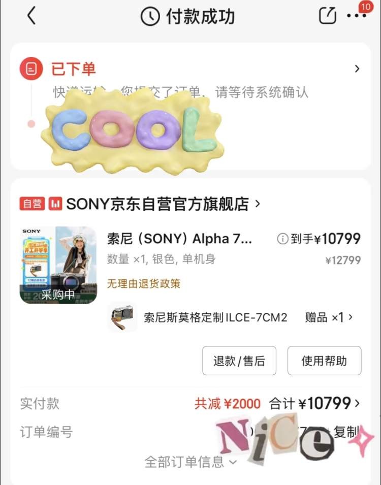 例如,记者看到令不少人激动的“国补索尼A7C2”,索尼Alpha7C II全画幅微单相机,原本12799元,享受上限2000元的补贴后,最终能以10799元的价格成功入手。
