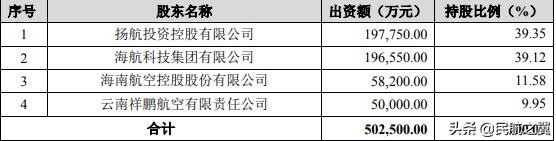 当时由海航集团(85%)、海航股份(5%)、上海机场集团(10%)共同投资组建。