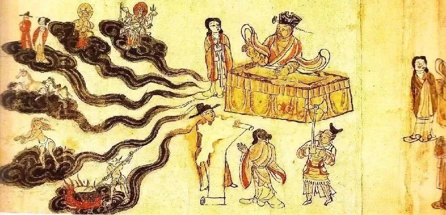 所以在晚唐敦煌变文《韩擒虎话本》,更是惟妙惟肖描述了韩擒虎在灭陈后,五道将军持天符请他出任阴司之主,韩应允,请假三天.隋文帝杨坚并举行了告别宴会.第三日,有一紫衣人、一绯衣人乘乌云前来迎接,自称"原是天曹地府,来取大王"上任.于是,他辞别朝廷君臣和家小,赴阴间当阎罗王去了.显然,仍是循《隋书》嬗变而来。