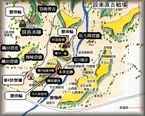 与此同时,德川家康在后方的弹正山上指挥若定,命令逃回栅内的大久保兄弟与其他德川军重新集结,反包围山县昌景的部队。