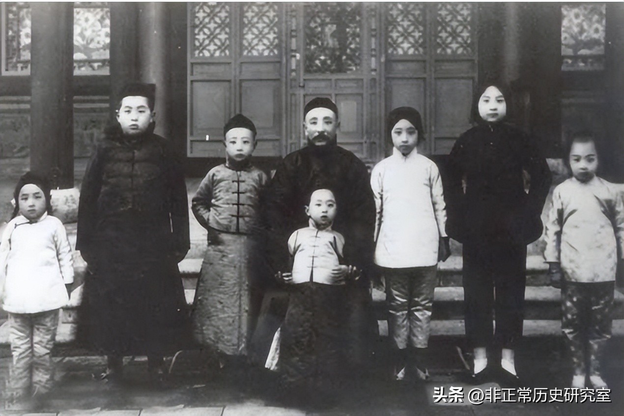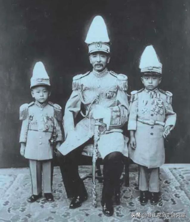 张作霖与第五个儿子张学森(左)、第六个儿子张学浚(右)合影