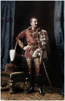 威廉二世(德语:Wilhelm II von Deutschland,1859年1月27日~1941年6月4日),原名弗里德里希·威廉·维克多·阿尔伯特·冯·霍亨索伦(Friedrich Wilhelm Viktor Albert von Hohenzollern),是德意志帝国末代皇帝和普鲁士王国末代国王(1888年6月15日~1918年11月9日在位)。他是威廉一世的长孙,腓特烈三世和维多利亚公主的长子。由于出生时发生臀位生产,他患有厄尔布氏麻痹(Erb's Palsy)以致左臂萎缩。为弥补这一生理缺陷,威廉自幼接受严格的军事训练,尤其擅长于马术。1877年,他以皇长孙的身份进入著名学府波恩大学,专攻法律与国家学。1881年获学士学位。