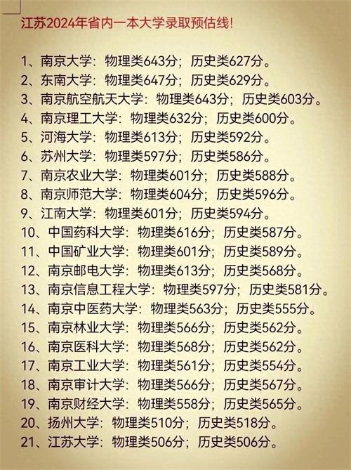 2024年江苏一本大学录取预估线分析:历史与物理科目趋势解析