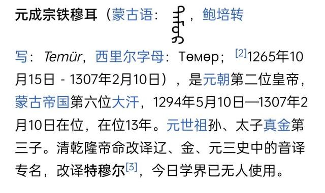 大德十一年九月十一日(1307年10月7日),元武宗为铁穆耳上谥号钦明广孝皇帝,庙号成宗,蒙古语称号完泽笃皇帝。
