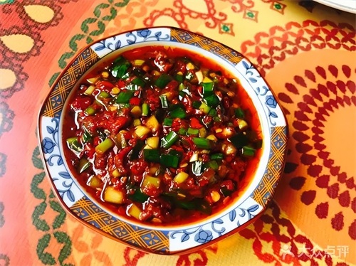 韭菜在锡伯族人饮食中的地位也不可轻视,锡伯族人喜爱吃锡伯大饼,同时与之分不开的一种辣酱就是韭菜辣子酱,将新鲜韭菜洗净,切至丁状放入盆中加适量盐备用。将油烧热,加入辣椒面,制作油辣子,将烧开的油辣子直接倒入装有韭菜丁的盆中,然后搅拌均匀即可。但这个韭菜辣子酱,不宜长期保存,制作后的韭菜辣子酱放入冰箱,最好在一个星期内食用完,在没有冰箱的时候,都是现做现吃,早晨做的放在阴凉的房间中下午还能继续吃。