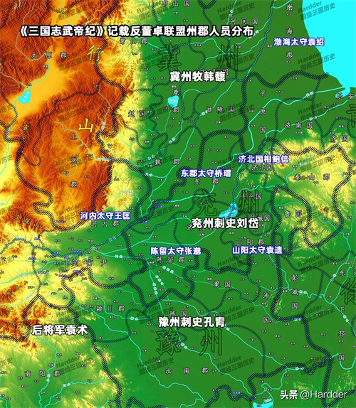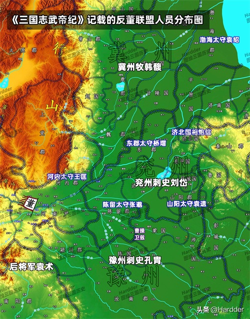 《三国志武帝纪》中记载的反董卓人员分布图。