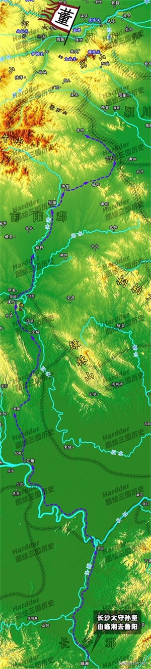 孙坚在起兵讨董前一直担任长沙太守,起兵之后一路北上,去往鲁阳与袁术联合。孙坚北上的路线分析参看前面孙坚上任长沙太守的路线。