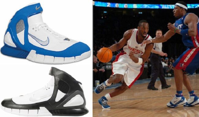 虽然没有被冠以「Kobe」的名号,但这双战靴是名符其实的第一双 Nike Kobe 球鞋,陪伴了科比 2003-2004 赛季。