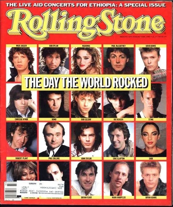 1985年7月13日,在美国温布利球场和肯尼迪体育馆的双场音乐会上,上演出了一场历史上最伟大的音乐表演。同年8月,Rolling Stone发行“Live Aid”特刊,记录了这场以救济埃塞俄比亚的饥荒的慈善音乐会,并在刊物中加入了对当时后台歌手状况的描述与采访。