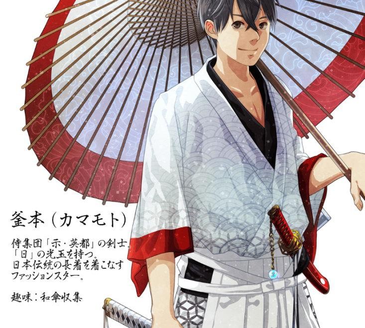 为庆祝2020东京奥运会设计的日本国旗“日章旗”的拟人化动漫人物