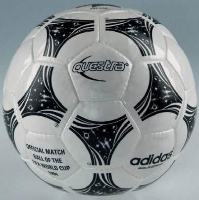 美国世界杯上,美国人把自己对于太空的探索表现在了他们的世界杯用球上,球上星空的图案自然是美国人趁机炫耀一波自己无与伦比的太空科技地位。他们推出了第一颗以高科技和超高能量反弹白泡棉层为特色的比赛用球,更加柔软,脚感更加舒适。