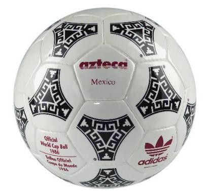 阿兹特克是第一款用全合成材料制作而成的世界杯用球,吸水性和耐用性更好,墨西哥人以此为荣,将自己的世界杯比赛用球用自己的历史来命名。球上的花纹也有着墨西哥文化的色彩。它也在马拉多纳的脚下和手上分别完成了流传至今的故事。