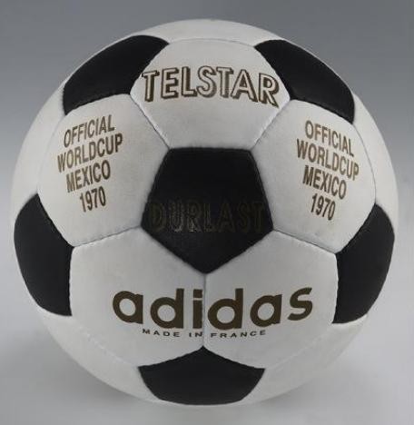 墨西哥世界杯的用球叫Telstar(电视之星),名字由“Television”(电视)和“Star”(星星)两个单词组合而成,以纪念足球史上第一次通过卫星向全世界直播的世界杯。电视之星的表皮由32块黑白相间的嵌面组成(12块黑色五边形+20块白色六边形),足球成了黑白色,观众们也更能看清皮球的轨迹。