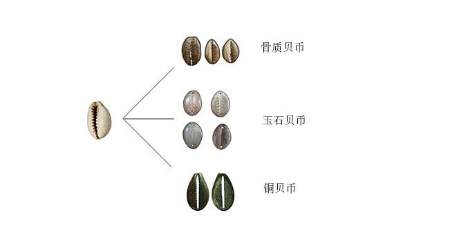 后来人们把贝壳这种频繁被要求作为等价物的物品作为交换媒介,去交换其他物品。由于媒介品除了自身要有价值(比如稀缺性),还需要有耐磨、便携等属性。而具有这些属性的宝贝科贝类便成为了最初形态的货币。后来贝类作为货币供不应求,相继出现了用其他材质做成的,它们外形与贝类非常相似。其中包括骨质的、玉石、陶质的、还有金属的。
