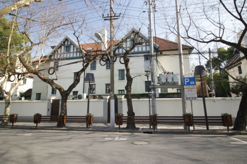 巨鹿路868-892号,英式双毗连花园住宅。共12幢,沿路排列,南面设大花园,北面有小院。单体为假三层,红瓦坡顶,三角形山墙露木构架。