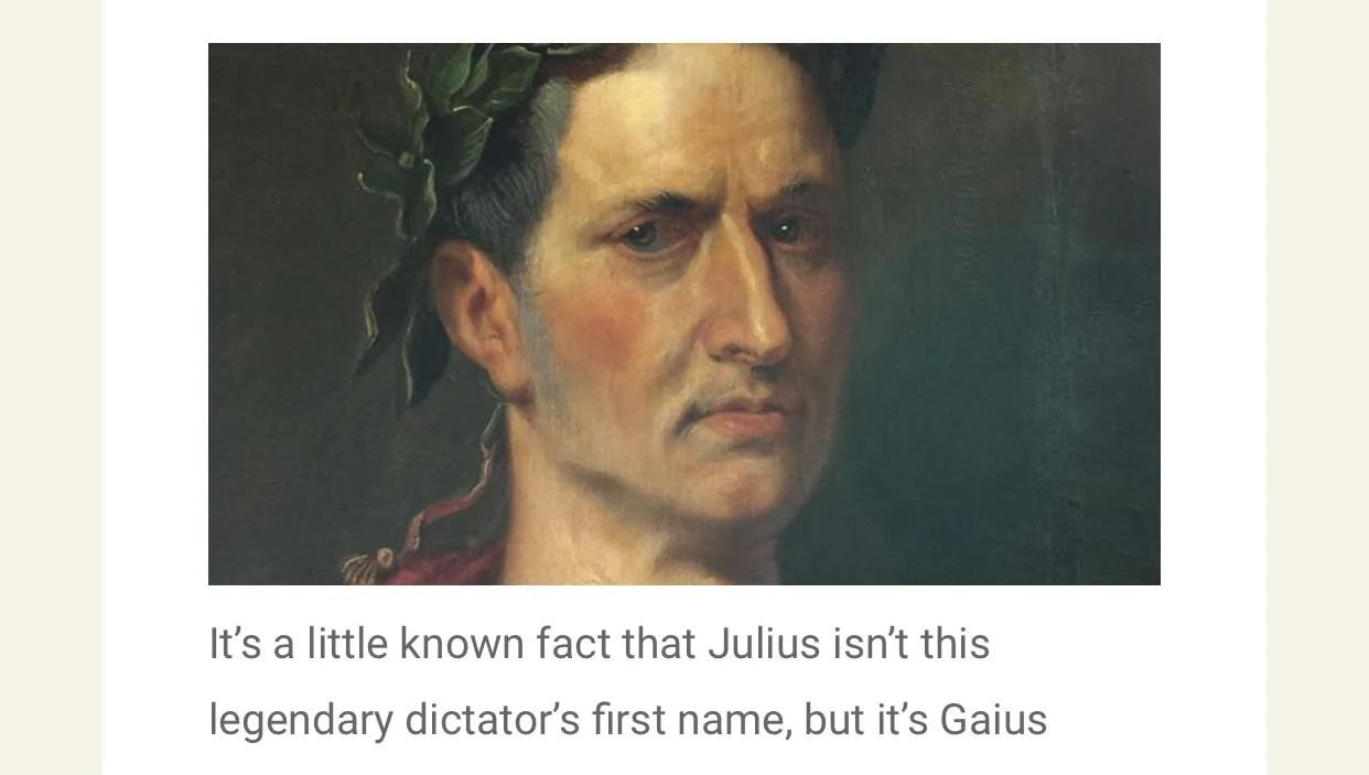 一个鲜为人知的事实是,Julius不是这位传奇独裁者的名字,而是盖乌斯Gaius。